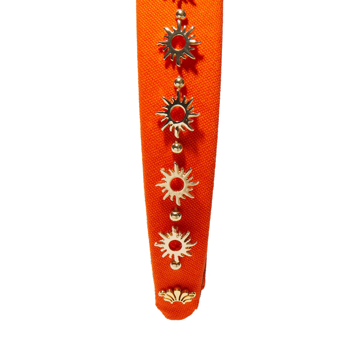- Hand-embellished with 14K gold-plated beads and sun charms