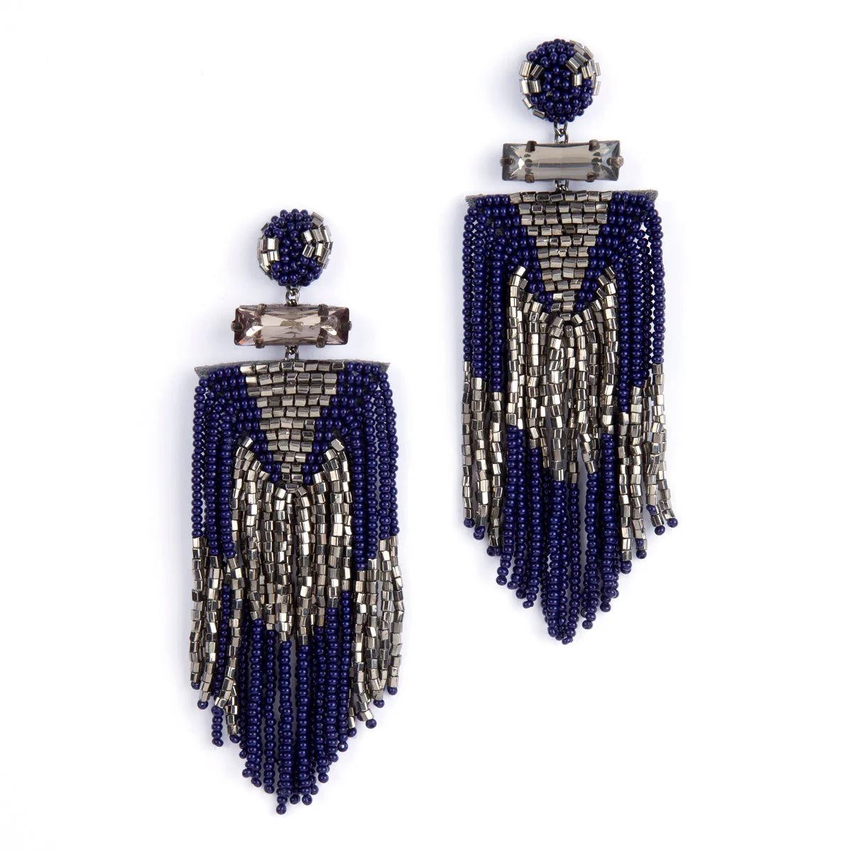 The cascading fringe design brings movement and energy, catching the light as you turn heads wherever you go. Whether paired with a chic cocktail dress or elevating a casual ensemble, these earrings are the perfect blend of fun and sophistication. Crafted with care using nickel-free materials and a vegan leather backing, the Jody Earrings in Navy deliver both comfort and style.