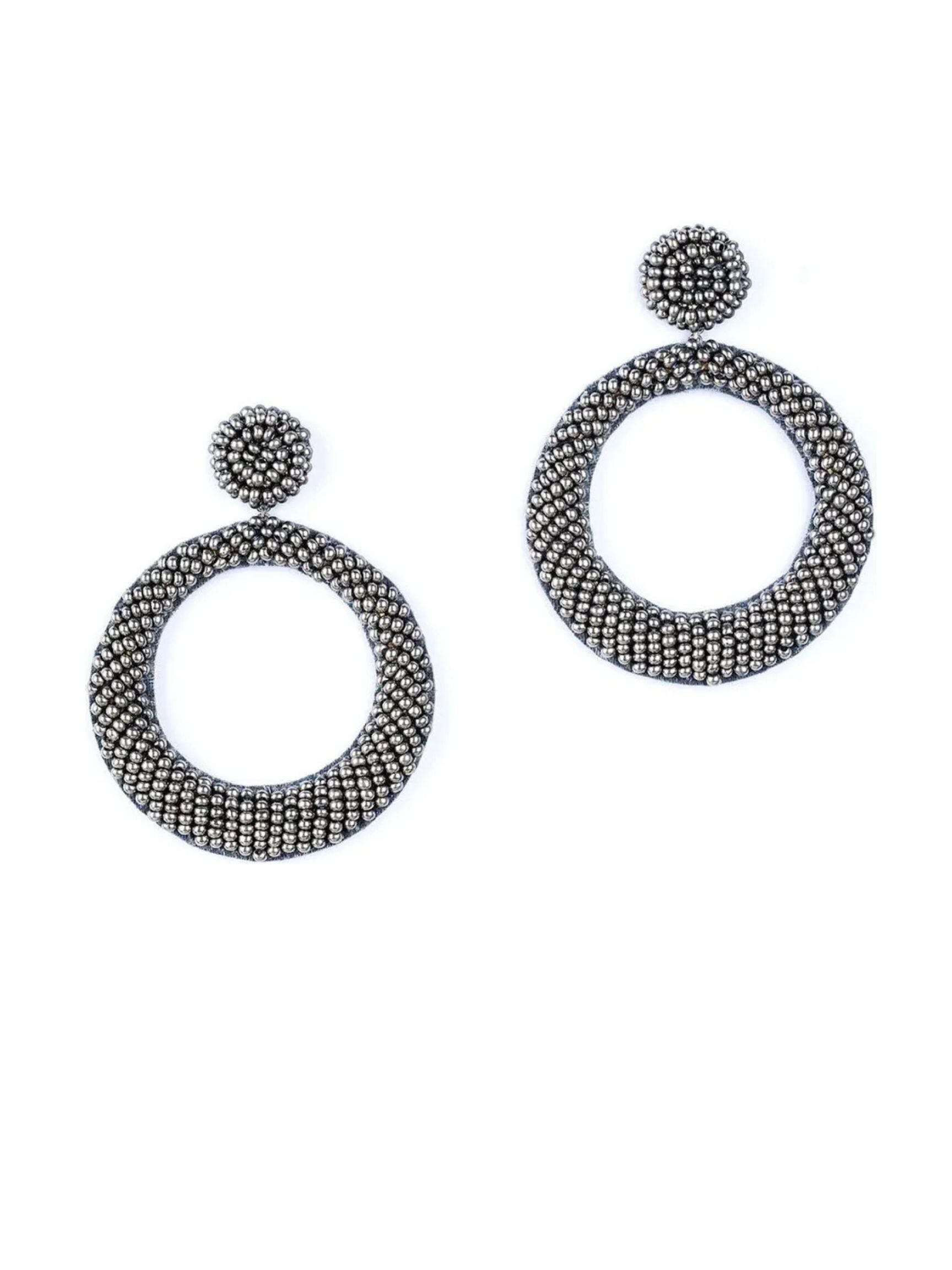 Elevate your everyday look with the edgy sophistication of the Asta Earrings in Gunmetal—a bold alternative to classic hoop earrings. These striking drop earrings feature intricately stitched seed beads, creating a mesmerizing texture that effortlessly blends elegance and modernity.