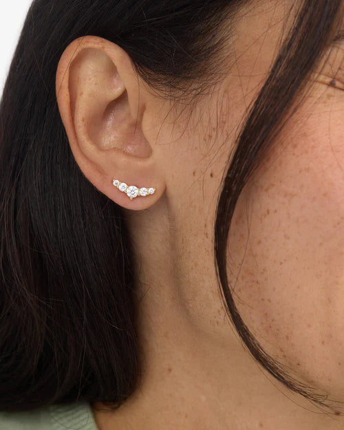 These elegant studs showcase a graduated arrangement of luminous simulated diamonds, designed to refract light beautifully from every perspective. The refined aesthetic seamlessly transitions from casual everyday wear to sophisticated evening occasions, offering versatile elegance that enhances any ensemble. A timeless addition to your jewelry collection that commands understated glamour.