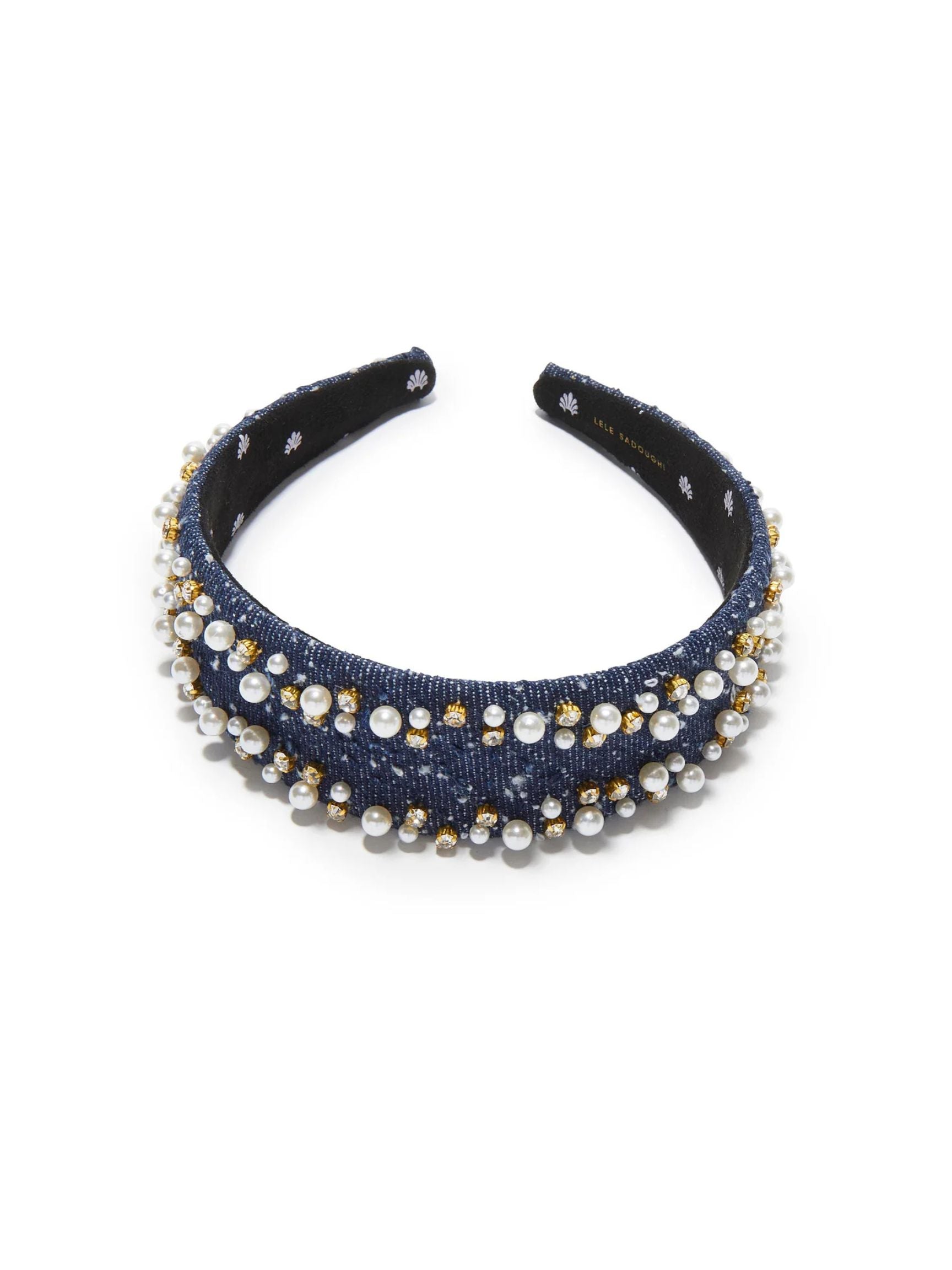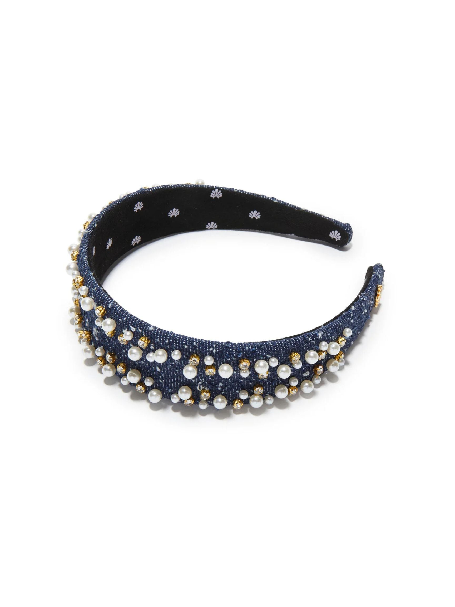 Lele Sadoughi Denim Dobby Cher Pearl Sprinkle Headbead