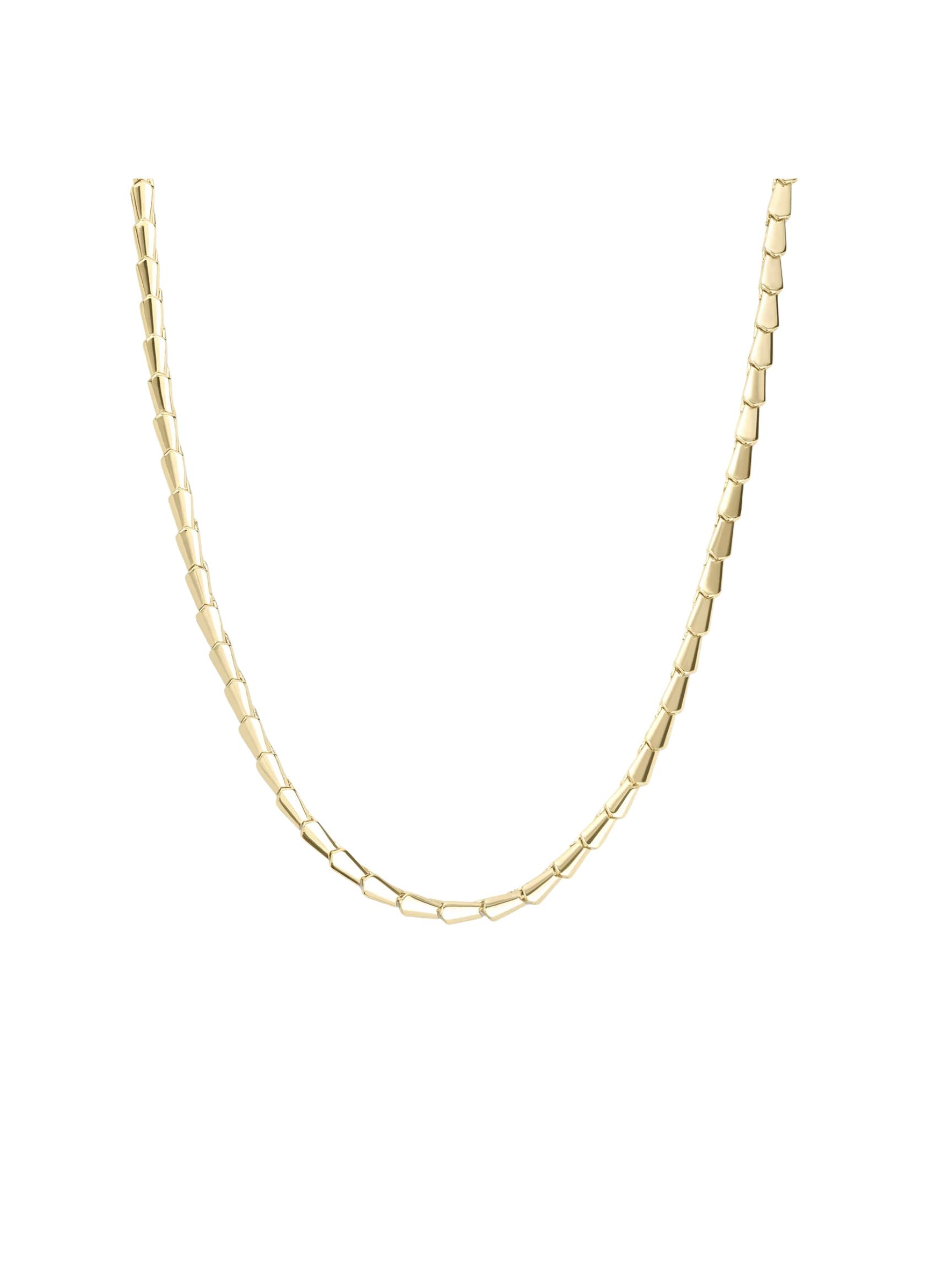 Embrace your boldest aesthetic with this striking serpent-inspired collar necklace. Featuring interlocking links that mimic the fluid movement of a snake, this 15" piece delivers understated edge and refined elegance. Whether worn as a standalone statement or layered with other pieces, it effortlessly elevates any ensemble with its sleek, contemporary design.