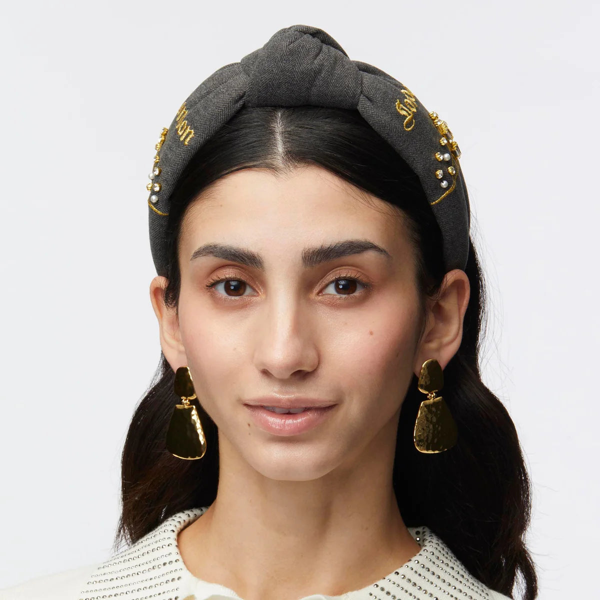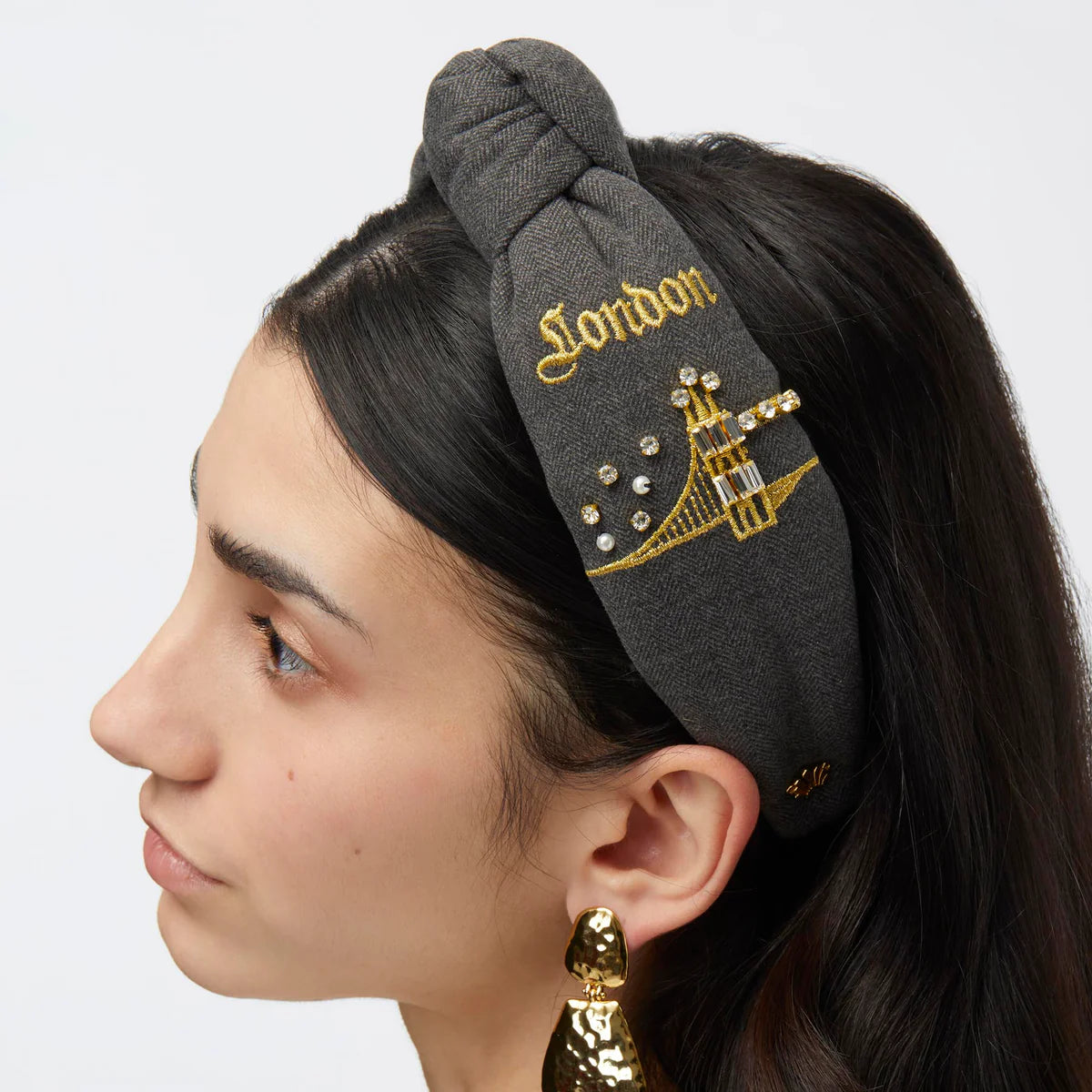 Introducing the London Headband— Lele's International Women’s Day Headband Design Contest winner, inspired by the grandeur and elegance of European architecture. The Lele Sadoughi Charcoal Herringbone London Knotted Headband captures this vision with its refined menswear-inspired pattern and timeless silhouette.