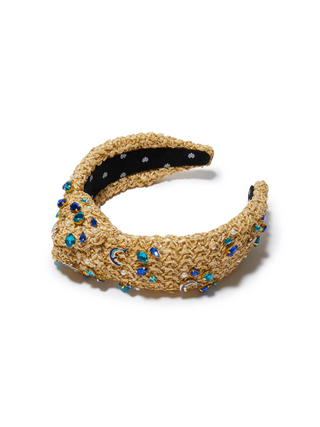 Lele Sadoughi Aegean Blue Slim Knotted Raffia Oasis Embellished Headband