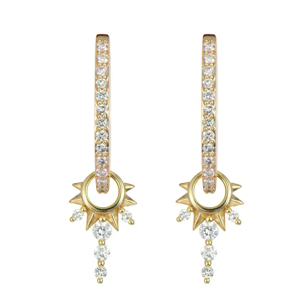 One of the most unique things about all of Three Stories pieces is that they are extremely versatile. Not only can the pieces lend themselves from a casual day to a night out on the town, but you can literally wear many of the pieces multiple different ways, yellow gold side out, white gold side out, thereby, getting many looks out of each piece of jewelry. Wear a pair of Three Stories charms on these hoops to really create a unique look and tell your story, wear them in the first piercing, second piercing...do not be afraid to layer, and go bold. Talk about getting multiple looks and having multi-functional pieces.