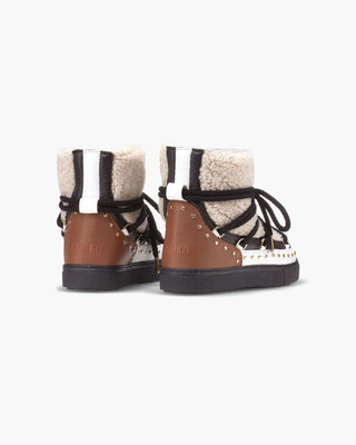 Step into a world of coziness. INUIKII's Curly Rock Boot in Cream, with its sneaker inspired looking sole, is covered in warm shearling on the upper and inside, with little studs on the side, making it a shoe which is unique in its design. It is handcrafted from premium shearling and leather, keeping your feet warm during the colder seasons. INUIKII stands for the combination of fashion and functionality and relies on local materials from Europe and handcrafted production in Europe. One of the main materials is shearling, which ensures the necessary warmth and comfort for many seasons thanks to its durability. This core material can be found in many INUIKII shoes and stands for the claim to focus on high quality and durability. The mixed media of this boot, makes is super unique and different.