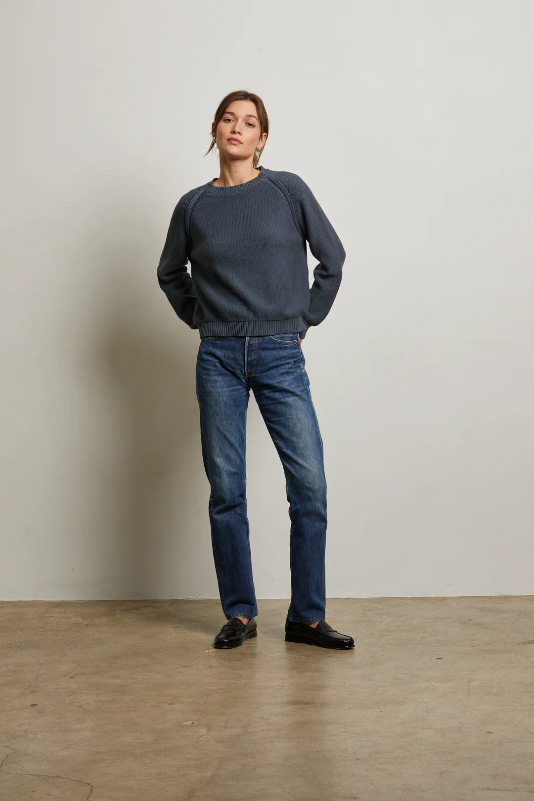 Perfect White Tee Evie Cotton Raglan Crewneck Sweater Night