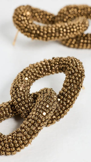 A little vintage, a little glam! Meet the Loulou Earrings in Antique Gold. These hand-embroidered beauties are made by skilled artisans using intricate metallic threadwork and delicate bead detailing. Each pair is crafted by hand, meaning no two are ever exactly alike, your earrings are as unique as you are.
