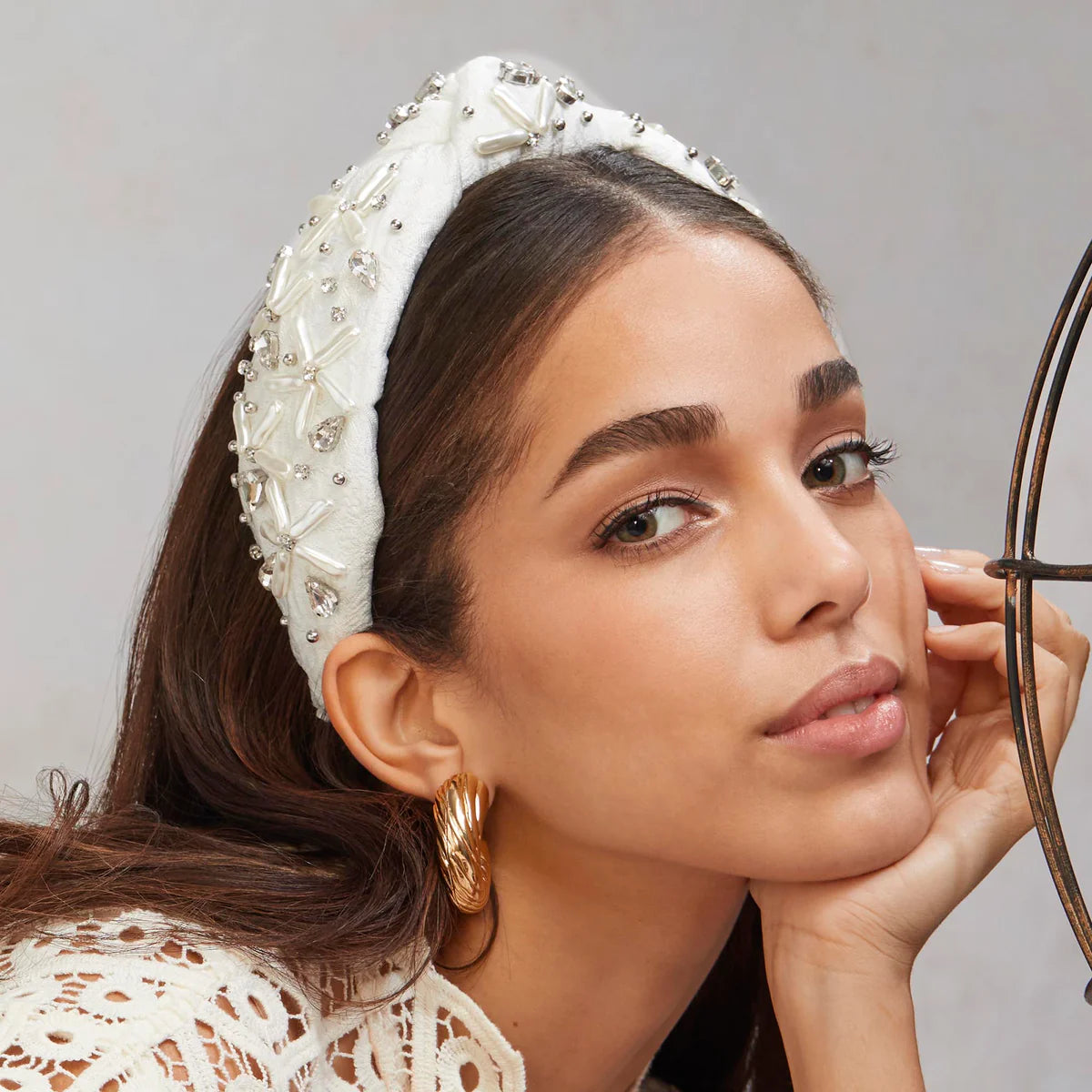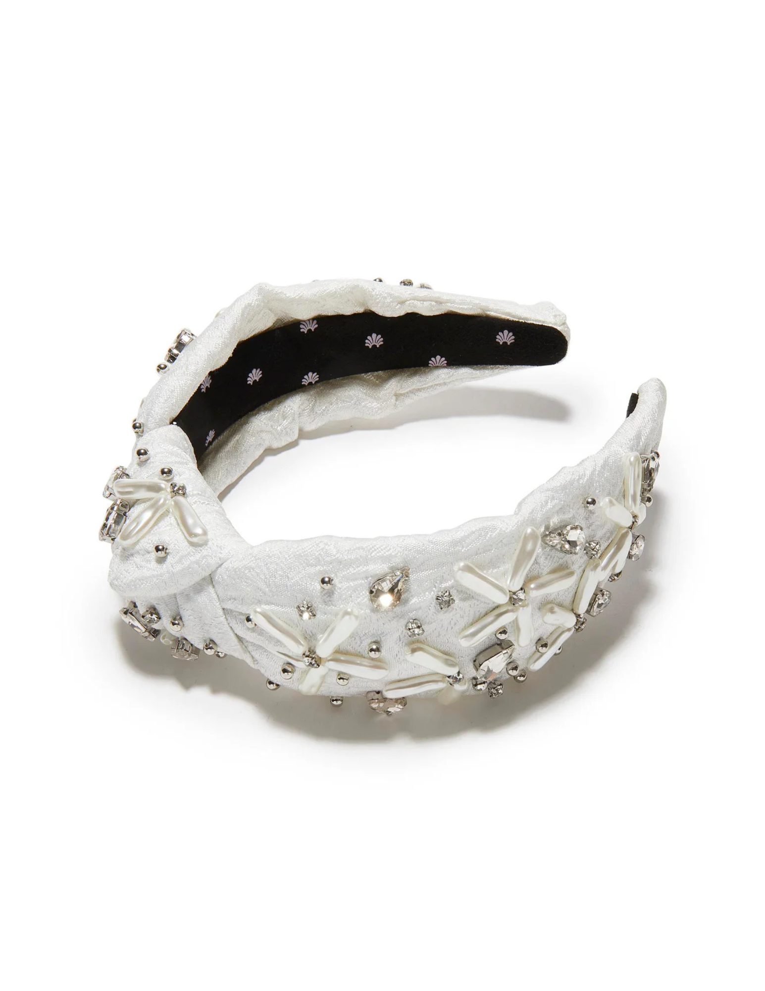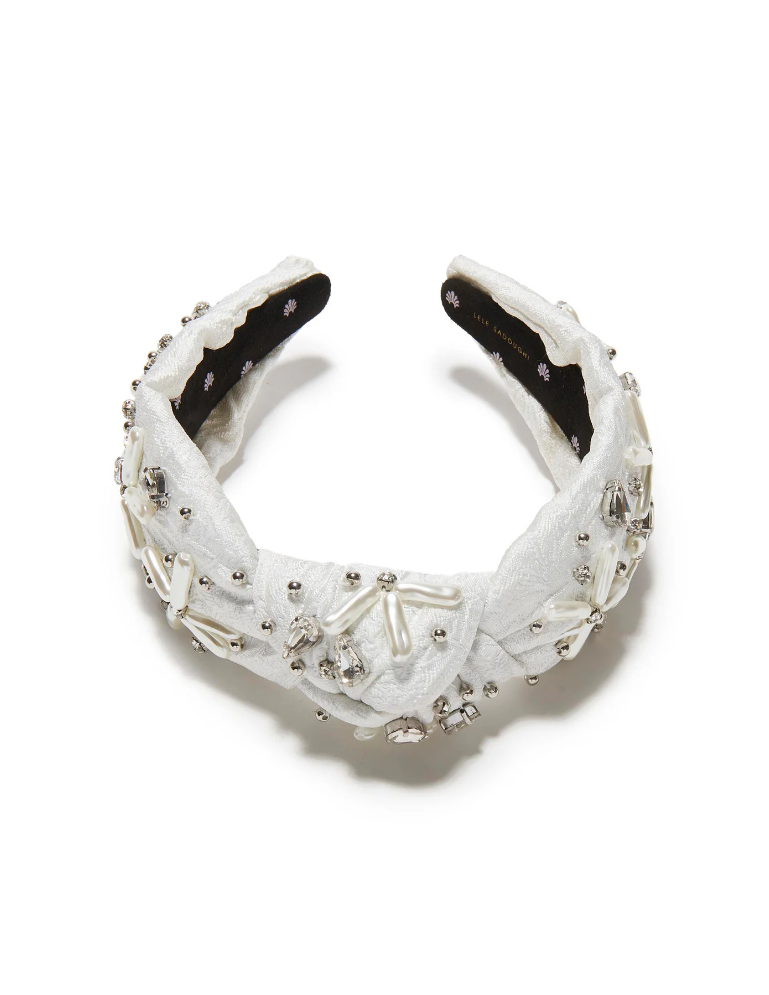 Lele Sadoughi Dove White Knotted Pearl Floral Brocade Headband