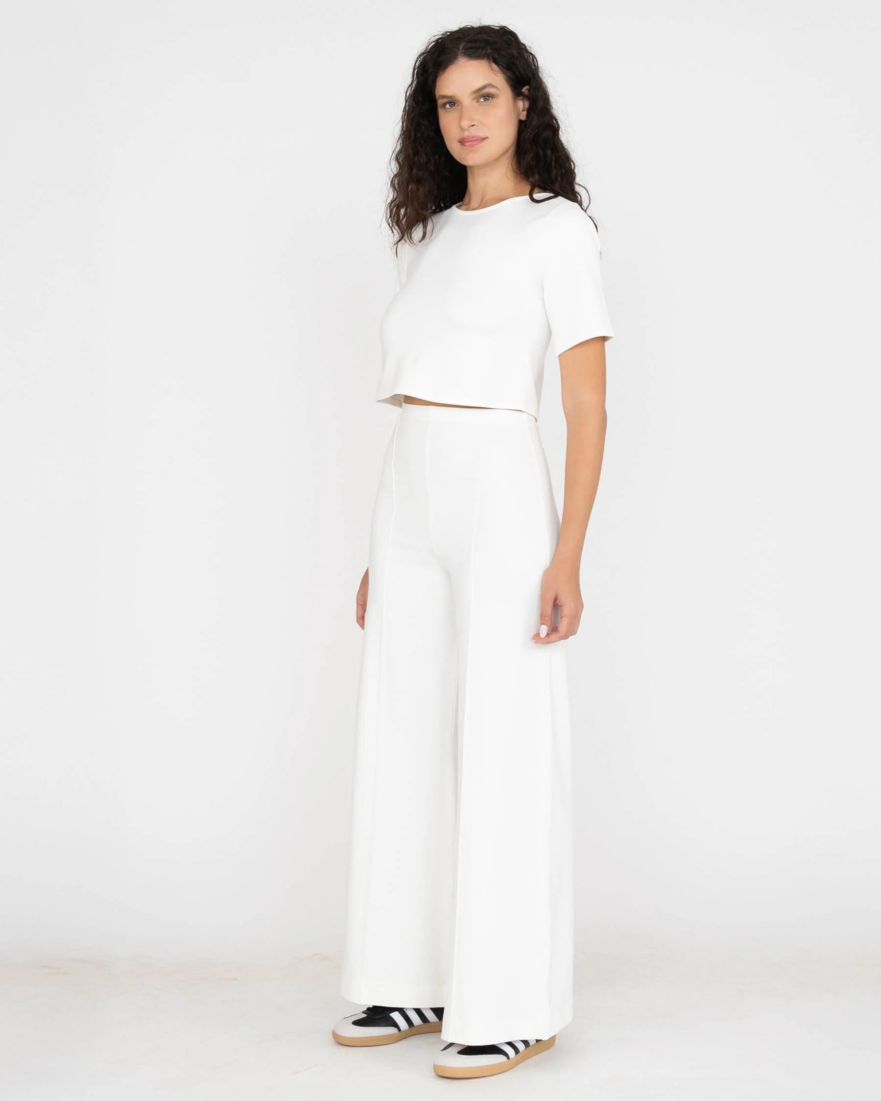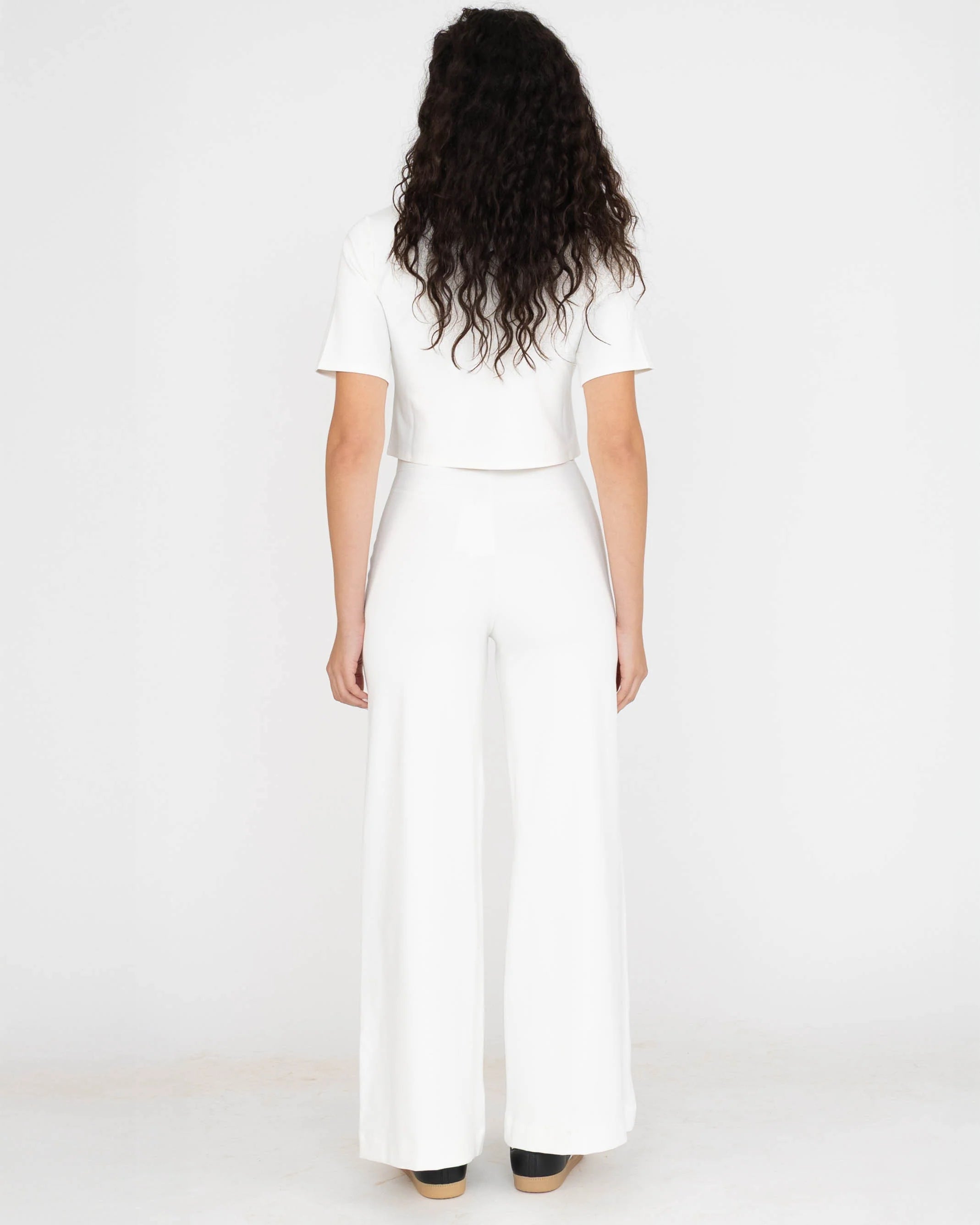 Forget the tailor appointment—Ripley Rader has done the work for you. The Standard is THE beloved Perfect Pant, now trimmed three inches shorter (than the long, and, three inches longer than the cropped) and ready to go straight from hanger to street. That same buttery-soft ponte knit that hugs your curves in all the right ways? Still here. That chic wide-leg silhouette that makes your legs look a mile long? Still here. What's new is the length that actually works with your favorite heels, sneakers, and everything in between—no hemming required. High-waisted, sculpting, and endlessly versatile, this is the polished pant that finally fits your life. The one fashion editors keep raving about. The one you'll actually wear every single day. In classic off-white.